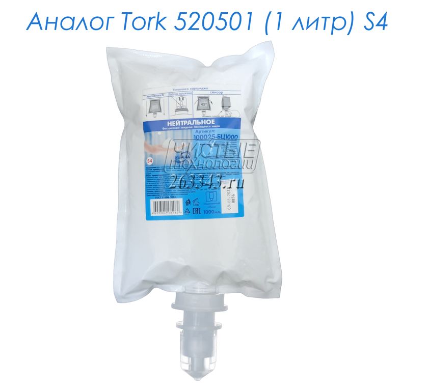 Российский аналог картриджа Tork арт.520501 для настенных дозаторов мыла-пены https://263343.ru/products/dispenser-tork-foam-soap-sensor , https://263343.ru/products/dispenser-tork-foam-soap-pressure , https://263343.ru/products/dispenser-tork-460009 , https://263343.ru/products/dispenser-tork-460010.