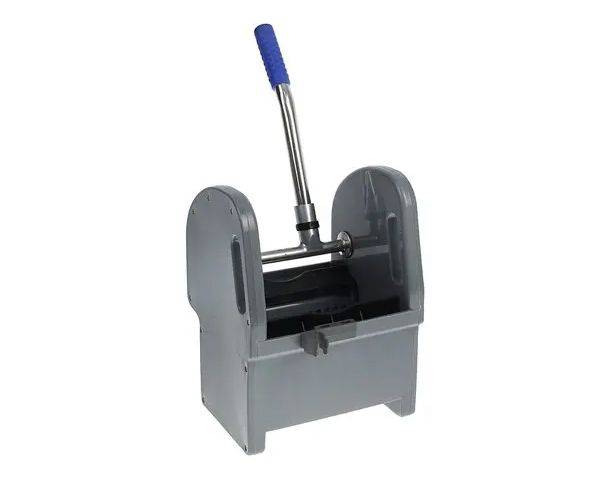 Выполнен из ударопрочного пластика. Крепление отжима адаптировано под все тележки и ведра (на которых предусмотрена установка отжима). Для выжимания МОПа достаточно опустить его внутрь отжима и нажать на рычаг. На конце рычага находится специальная эргономичная накладка-держатель под руку, чтобы предотвратить соскальзывание во время работы. Механический отжим быстро устанавливается на уборочную тележку (ведро) и, при необходимости, легко демонтируется. В комплект поставки вместе с отжимом также входит удобная скоба-крепление, для фиксирования рукоятки уборочного инвентаря. Фиксатор крепится непосредственно к корпусу отжима. С помощью данной скобы Вы можете надёжно зафиксировать уборочную швабру в ведре тележки. Механический отжим значительно облегчает и ускоряет работу уборщика.