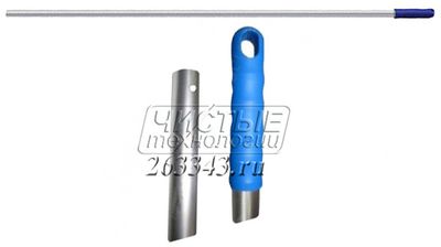 Универсальная алюминиевая ручка 140 см. без резьбы. Легкая, прочная, удобная ручка из алюминия для крепления флаундеров, щеток, сгонов и другого инвентаря для уборки пола. Фиксатор инвентаря вставляется в специальное небольшое отверстие на конце алюминиевой ручки. Таким образом, обеспечивается прочная фиксация ручки и инвентаря. На другом конце ручки эргономичная пластиковая накладка-держатель. Обеспечивает надёжный контакт с рукой пользователя во время работы.