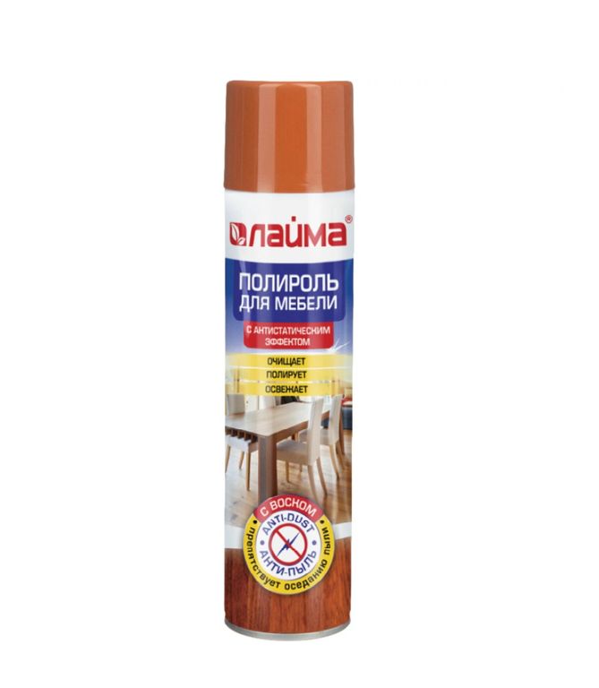 Полироль для мебели ЛАЙМА "Антипыль" быстро и эффективно очищает, полирует и препятствует оседанию пыли, обладает антистатическим эффектом.